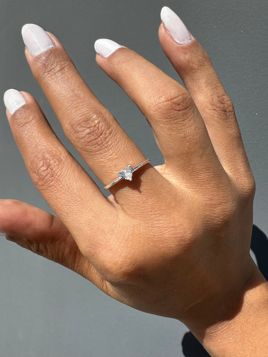 Anel Prata 925 Solitário Coração Zirconia