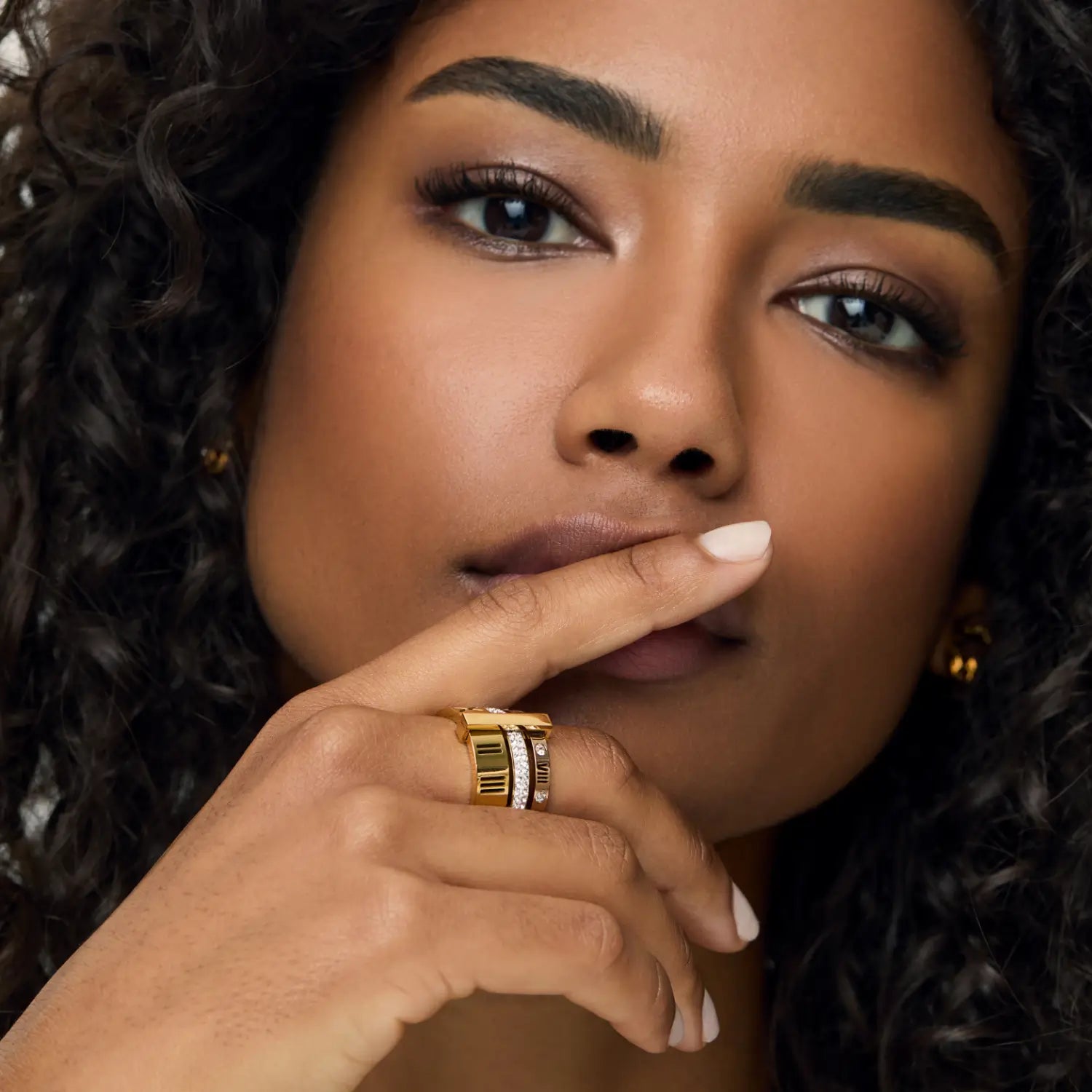 Esse é o Anel Triplo Momentos - uma combinação única de três anéis que se unem para criar uma peça deslumbrante e elegante.