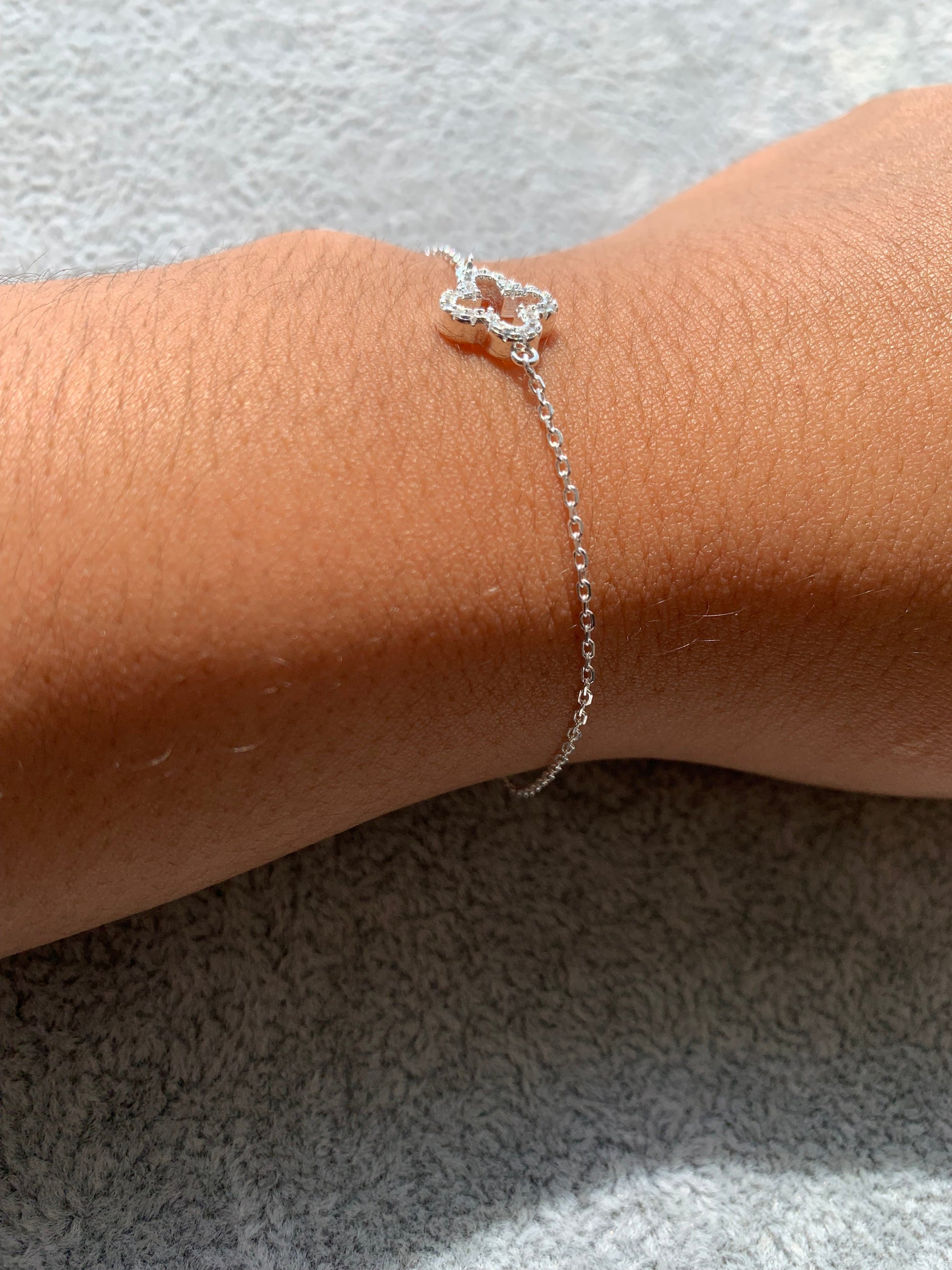 Pulseira Prata 925 Trevo com Zircônia (Vazada)